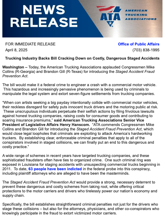 Reintroduced by Rep. Josh Brecheen (R-Oklahoma), the Deregulating Restrictions on Interstate Vehicles and Eighteen-Wheelers (DRIVE) Act would prohibit FMCSA from issuing “any rule or regulation to require vehicles with a gross vehicle weight of more than 26,000 pounds operating in interstate commerce to be equipped with a speed limiting device set to a maximum speed.” Speed limiters resurfaced under the Biden Administration after having been put on the regulatory backburner during President Trump’s first administration.