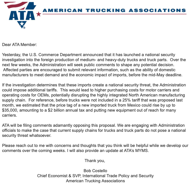 The illegal use of Mexican B-1 drivers for domestic trucking is a growing concern for the trucking industry. The American Trucking Associations brought this issue to light at the Truckload Carriers Association’s conference last week, blaming the practice for contributing to the difficult freight market. “If you are using Mexican B-1 drivers to haul domestic loads, that is illegal. It is called cabotage,” Bob Costello, ATA’s chief economist, said during a presentation at Truckload 2025 in Arizona. “It’s another reason why the market has been bad.”