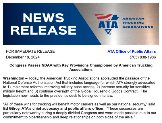 Utah Trucking Association Newsletter; December 19th, 2024