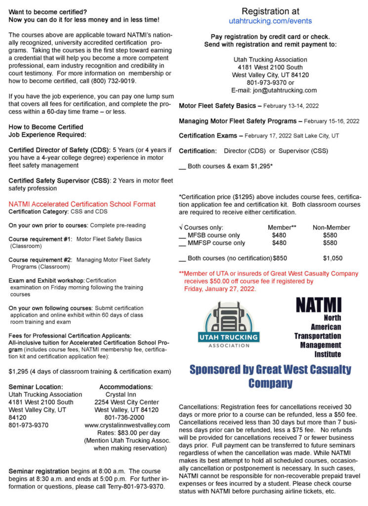 • Southern Utah Trucking Association Scholarship Applications is Open again. Applications due Dec 31st, 2022.