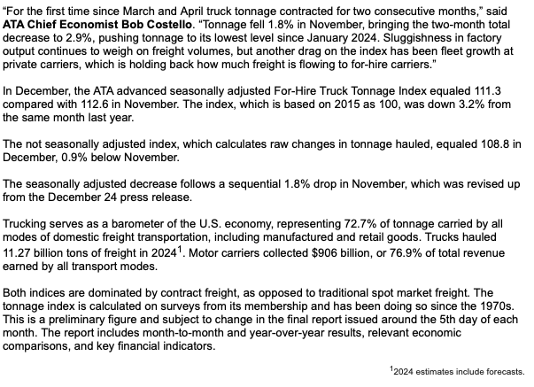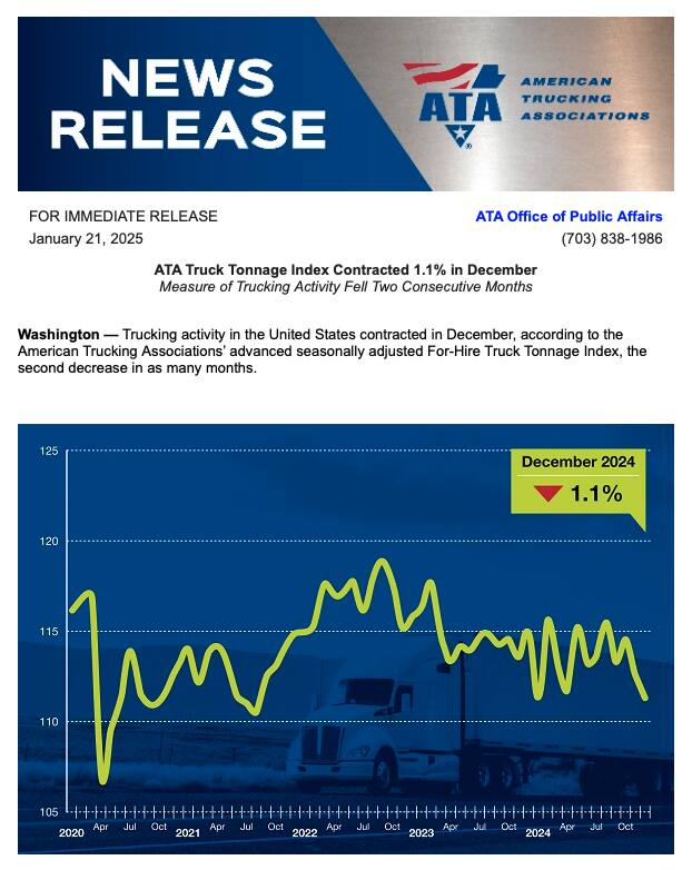ATA Forecasting Freight Bounce Back in 2025