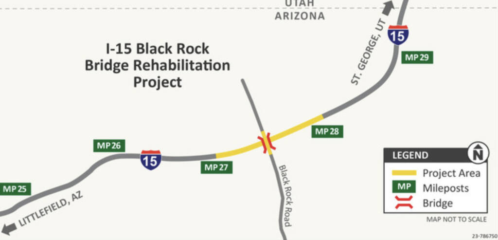 | The Arizona Department of Transportation is advising drivers to plan for 24-hour traffic restrictions on the Black Rock Road Bridge over Interstate 15 beginning Monday morning, Jan. 9. The bridge is located about two miles south of the Arizona-Utah state line (milepost 27) in the far northwestern part of the state. The bridge will be narrowed to one lane only of alternating east- and westbound travel. A temporary traffic signal will be in place for the duration of the project. A 12-foot vehicle width restriction will be in place. The speed will be reduced through the work zone. Drivers should proceed through the work zone with caution, slow down and watch for construction personnel and equipment. In addition, traffic restrictions will be in effect on north- and southbound I-15 when work below the bridge takes place. The restrictions are needed so crews can safely work on increasing the lifespan of the bridge. Additional restrictions will be announced in the coming months as construction continues on the bridge rehabilitation project. The work will include: Placing a concrete surface along the entire bridge decks, which is the top portion of a bridge that motorists drive on. Repaving the approaches to provide a smooth transition to each bridge structure. Removing and replacing the deck joints with new joints. Removing and replacing the guardrails. Other related work. The project is scheduled to end in the spring.For more information, visit: https://azdot.gov/projects/northcentral-district-projects/interstate-15-black-rock-road-bridge-rehabilitation |