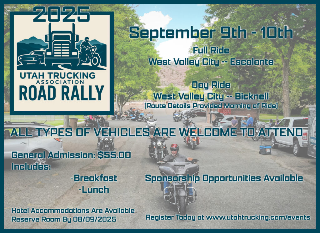 - September 9th – 10th, 2025 – Utah Trucking Association 2025 Road Rally