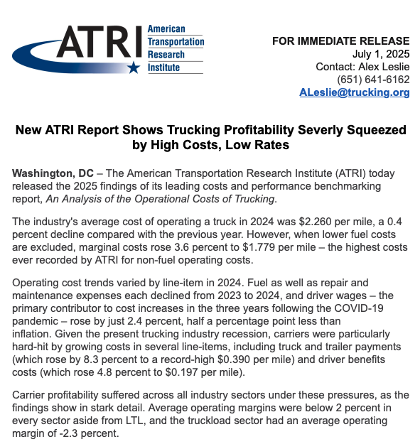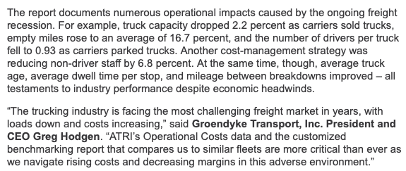 The full report is available on ATRI’s website here. Participating carriers receive a customized report directly comparing their operations to an anonymized peer group of the same sector and size.