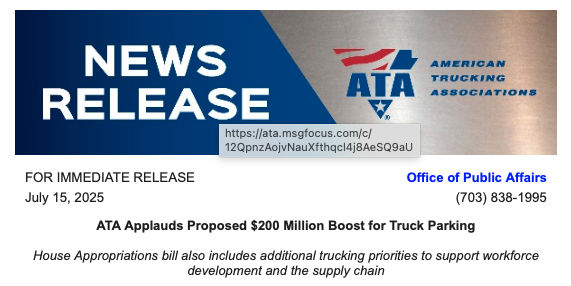 The bill would spend $200 million to expand truck parking, uphold the federal preemption determination of California’s meal and rest break rule, and protect the improvements ATA made to the Safe Driver Apprenticeship Pilot program.