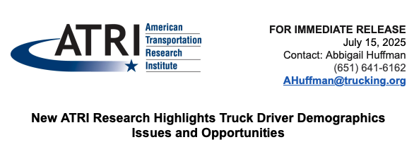 Washington, DC – The American Transportation Research Institute (ATRI) today released new research detailing a notable demographic shift in the U.S. truck driver workforce. The research examines how broader societal and labor force trends are reshaping the industry and presents strategies for motor carriers to engage younger, more diverse, and historically underrepresented populations. The research is organized into two key phases:
