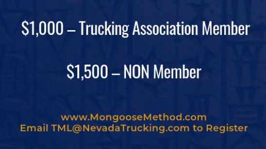 - October 22nd – 23rd, 2024: Nevada Trucking Association Mongoose Method Training